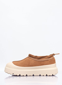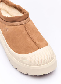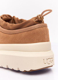 Tasman weather hybrid slip-on shoes in suede with drawstring cuff. - Round toe - Rubber toe cap - Drawstring cuff - Side logo motif - Wool lining - Treadlite outsole - 53% Leather, 47% Technical Blend Fabrication - Color: Camel - Code: 1144096-CWTC