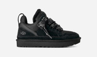 We see you out there in your evolution era. Catch us in ours. The Lowmel gives nostalgic West Coast vibes in the best way. The two-toned laces are a ~ moment ~ designed to be worn open and loose. We've gone for soft, spring-inspired materials that call back to classic sneakers. Crafted with a suede upper, we've added a mesh vamp for warm-weather wearability. Set on a molded footbed and sugarcane EVA outsole for premium comfort.This product was made in a factory that supports women in our supply chain with the help of Reimagining Industry to Support Equality (RISE). This collaborative initiative creates partnerships with brands like ours to empower and educate women in the workplace. Suede, Recycled ballistic canvas mesh upper. Webbing heel strap, The UGG® Logo patch, Padded collar, Oversized padded tongue. Laces made from 100% UNIFI recycled polyester fibers, Two-tone flat lace. Polyester mesh lining made from 55% coffee charcoal modified polyester and 45% regular polyester, 10mm UGG®plush 60% upcycled wool, 40% lyocell lining. 10mm UGG®plush 60% upcycled wool, 40% TENCEL Lyocell insole. EVA footbed. Sugarcane EVA outsole. The UGG® Logo, embossed. Additional set of laces included. RN 88276. UGG® Women's Lowmel Canvas/Suede/Recycled Materials Shoes in Black, Size 12