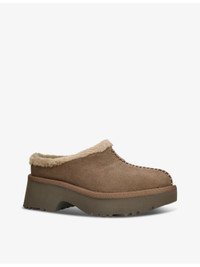 PRODUCT DETAILS - UGG suede and shearling clogs - 100% suede - Slips on - Round closed toe, Twin Seam detailing, lined, heat-embossed UGG® logo on heel, moulded footbed, chunky sole - Heel height 2"" - Specialist clean - Upper: 100% suede - Lining: 60% upcycled wool, 40% lyocell - Sole: 100% EVA Ref: R04353131