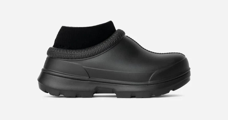 Wait, these are so good. Off-duty model vibes are served up just for you in this ultra-versatile clog. Our Tasman X is the molded foam version of our best-ever Classic Tasman. Stroll in the sun, splash through the drizzle, and kick it any way you like. (10/10 would style it with a lightweight trench coat.) Find new ways to play in this molded clog we've all been living for. And oh, look: it has a tonal-colored, UGG®plush-lined, removable sock, too, because our designers are just that thoughtful.This product was made in a factory that supports women in our supply chain with the help of Reimagining Industry to Support Equality (RISE). This collaborative initiative creates partnerships with brands like ours to empower and educate women in the workplace. EVA, Treadlite by UGG® upper. Non-waterproof removable sock (53% Recycled Polyester, 38% Acrylic, 9% Nylon), 10mm curly UGG®plush sockliner (70% TENCEL Lyocell, 30% upcycled wool). Treadlite by UGG® midsole. Treadlite by UGG® outsole for comfort. The UGG® Logo on woven label on sockliner. Best for: Casual, Light or moderate rain. RN 88276. UGG® Women's Tasman X Eva/Treadlite by UGG®u00ae Boots in Black, Size 9