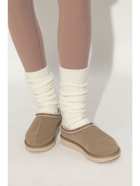 Tazz slippers Highlights - Sand brown - Suede - Slip-on style - Raised seam detail - Whipstitch trim - Debossed logo to the side - Round toe - Shearling lining - Rubber sole Made in Italy Composition Suede 100% SIZE & FIT Measurement HEEL 1.18 in(3 cm) Sole height 0.78 in(2 cm)