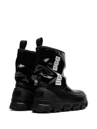Classic Brellah Mini "Black" boots A contemporary rendition of UGG's Classic Mini boots, the Brellah is characterised by its glossy water-repellent upper, seen in black with the brand's logo printed on the side in contrasting white. Highlights - Black - Recycled polyester - Patent finish - Pull-tab at the heel - Logo print to the side - Ankle-length - Slip-on style - Chunky rubber sole Imported Composition Lining: TENCEL™ Lyocell (LENZING) 40% Filling: Recycled Wool 60% Outer: Recycled Polyester 100% Sole: Thermoplastic Elastomers (TPE) 100% SIZE & FIT Measurement CIRCUMFERENCE 12.59 in(32 cm) HEEL 1.37 in(3.5 cm) HEIGHT 7.08 in(18 cm) Sole height 0.98 in(2.5 cm)