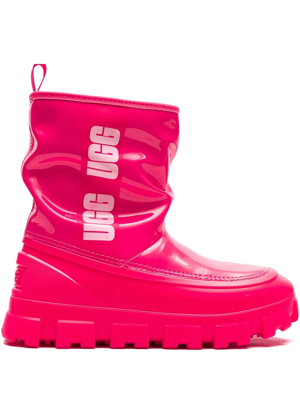 Classic Brellah Mini "Super Coral" boots A contemporary rendition of UGG's Classic Mini boots, the Brellah is characterised by its glossy water-repellent upper, seen in a flamingo pink colourway with the brand's logo printed on the side in contrasting white. Highlights - Pink - Slip-on style - Pull-tab at heel - Logo-print embellishment - Round toe - Rubber tread sole - Release date: december 10, 2024 - These styles are supplied by a premium and authenticated sneaker marketplace. stocking only the most sought-after footwear, they source and curate some of the most hard to find sneakers from around the world. Imported Composition Sole: Rubber 100% Lining: Plastic 100% Outer: Plastic 100% SIZE & FIT Measurement CIRCUMFERENCE 12.59 in(32 cm) HEEL 1.37 in(3.5 cm) HEIGHT 7.08 in(18 cm) Sole height 0.98 in(2.5 cm)