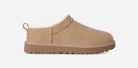 Our Classic Micro reimagines our fan-favorite Classic Boot with a new, low-profile design (and high-profile comfort). It has a genuine suede upper lined with mega-soft sheepskin that naturally regulates temperature, so you can wear socks - or not. The lightweight sugarcane EVA outsole delivers effortless support and adds that easy slipper feeling to every out-of-the-house venture.This product was made in a factory that supports women in our supply chain with the help of Reimagining Industry to Support Equality (RISE). This collaborative initiative creates partnerships with brands like ours to empower and educate women in the workplace. Suede or Suede with topically applied water repellency treatment or Water-resistant suede upper. Rear pull tab. 10mm sheepskin shaft lining, 17mm sheepskin vamp lining. 17mm sheepskin insole. Sugarcane EVA outsole. Textile binding made from 100% recycled polyester fibers. Woven label with The UGG® Logo on insole, The UGG® Logo embossed leather heel label. RN 88276. This product contains real fur from sheep or lamb. Fur may be sourced from Australia, Ireland, the United Kingdom, or the United States. It has been artificially dyed and treated.. UGG® Women's Classic Micro Sheepskin Classic Boots in Sand, Size 6