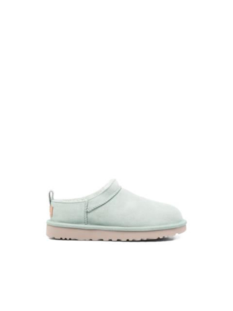 Classic "Dusted Cocoa" micro boot Highlights - Cocoa brown - Shearling trim - Pull-tab at the rear - Ridged sole - Slip-on style - Logo patch Imported Composition Outer: Calf Suede 100% Lining: Sheep Skin/Shearling 100% Sole: Rubber 100%