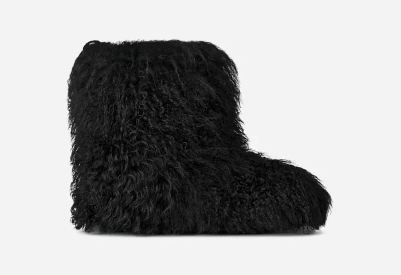 There's fluff, and then there's Fluff Momma. Our Classic Short Fluff Momma takes winter styling to a new level with its long sheepskin upper, and UGG®plush for that same Feel of UGG® you already know and love. Long sheepskin upper. Rear pull tab. 17mm UGG®plush 60% upcycled wool, 40% TENCEL Lyocell vamp lining, Textile lining on shaft. 17mm UGG®plush 60% upcycled wool, 40% TENCEL Lyocell sockliner. Sugarcane EVA outsole. Textile binding made from 100% recycled polyester fibers. 8 inch shaft height. RN 88276. This product contains real fur from sheep or lamb. Fur may be sourced from Australia, Ireland, the United Kingdom, or the United States. It has been artificially dyed and treated.. UGG® Women's Classic Short Fluff Momma Sheepskin Classic Boots in Black, Size 10