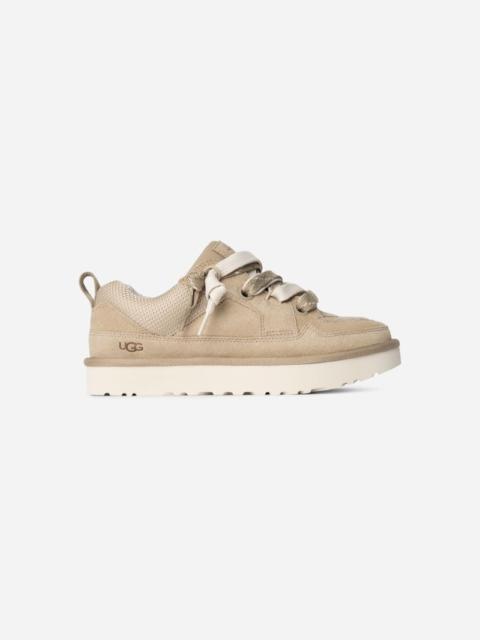With the ease of a sneaker and the comfort of a slipper, our Lo Lowmel is all about impeccable vibes. This newcomer to the Lowmel family features a lower profile that begs for baggy jeans, '90s jams, and seaside hangs. The upper features a textured mix of genuine suede and recycled ballistic canvas mesh, giving the quintessential sneaker style. On the bottom, you'll find our springy sugarcane EVA outsole that offers signature UGG® comfort and makes these feel extra light on the foot.This product was made in a factory that supports women in our supply chain with the help of Reimagining Industry to Support Equality (RISE). This collaborative initiative creates partnerships with brands like ours to empower and educate women in the workplace. Suede, Recycled ballistic canvas mesh upper. Webbing heel strap, The UGG® Logo patch, Oversized padded tongue. Two-tone flat lace, Dual-lace system. Polyester mesh lining made from 55% coffee charcoal modified polyester and 45% regular polyester. Textile sockliner (45% recycled polyester, 55% polyester). EVA footbed. Sugarcane EVA outsole. The UGG® Logo, embossed. RN 88276. UGG® Women's Lo Lowmel Suede/Textile/Recycled Materials Shoes in Chestnut, Size 11
