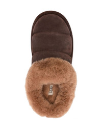Tazzlita shearling-lined slippers UGG says its Tazzlita slippers take ‘the cosiness of the iconic Tasman to the next level’ in a literal sense. They’re lined in signature upcycled UGGPlush™ shearling that overflows at the collars elevated on stacked platform soles. The quilted suede uppers are treated with a water-repellent coating. Highlights - Chocolate brown - Calf suede - Quilted - Water-repellent finish - Debossed logo to the side - Round toe - Slip-on style - Tonal stitching - Flat rubber sole - Shearling lining - Platform sole Imported Composition Sole: Rubber 100% Outer: Calf Suede 100% Lining: Sheep Skin/Shearling 100% SIZE & FIT Measurement CIRCUMFERENCE 15.74 in(40 cm) HEEL 1.96 in(5 cm) PLATFORM 1.96 in(5 cm)