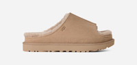 Just ask our Greenport Slide: you can have your slippers in the outdoor summertime, too. A lush addition to your indoor-outdoor collection, the Greenport Slide delivers The Feel of UGG® you love in a lighter silhouette. Immerse yourself in the naturally moisture-wicking sheepskin lining and insole, or add a pair of socks for extra coziness. From our Classic Boot bottom to our Twin Seam detailing on top, this is how UGG® does sunshine.This product was made in a factory that supports women in our supply chain with the help of Reimagining Industry to Support Equality (RISE). This collaborative initiative creates partnerships with brands like ours to empower and educate women in the workplace. Suede vamp, The Twin Seam detailing. 10mm sheepskin lining. 10mm sheepskin insole. Sugarcane EVA midsole. Sugarcane EVA outsole. The UGG® Logo, embossed, Woven label with The UGG® Logo on insole. Best for: Casual. RN 88276. This product contains real fur from sheep or lamb. Fur may be sourced from Australia, Ireland, the United Kingdom, or the United States. It has been artificially dyed and treated.. UGG® Women's Greenport Slide Sheepskin Slippers in Sand, Size 7