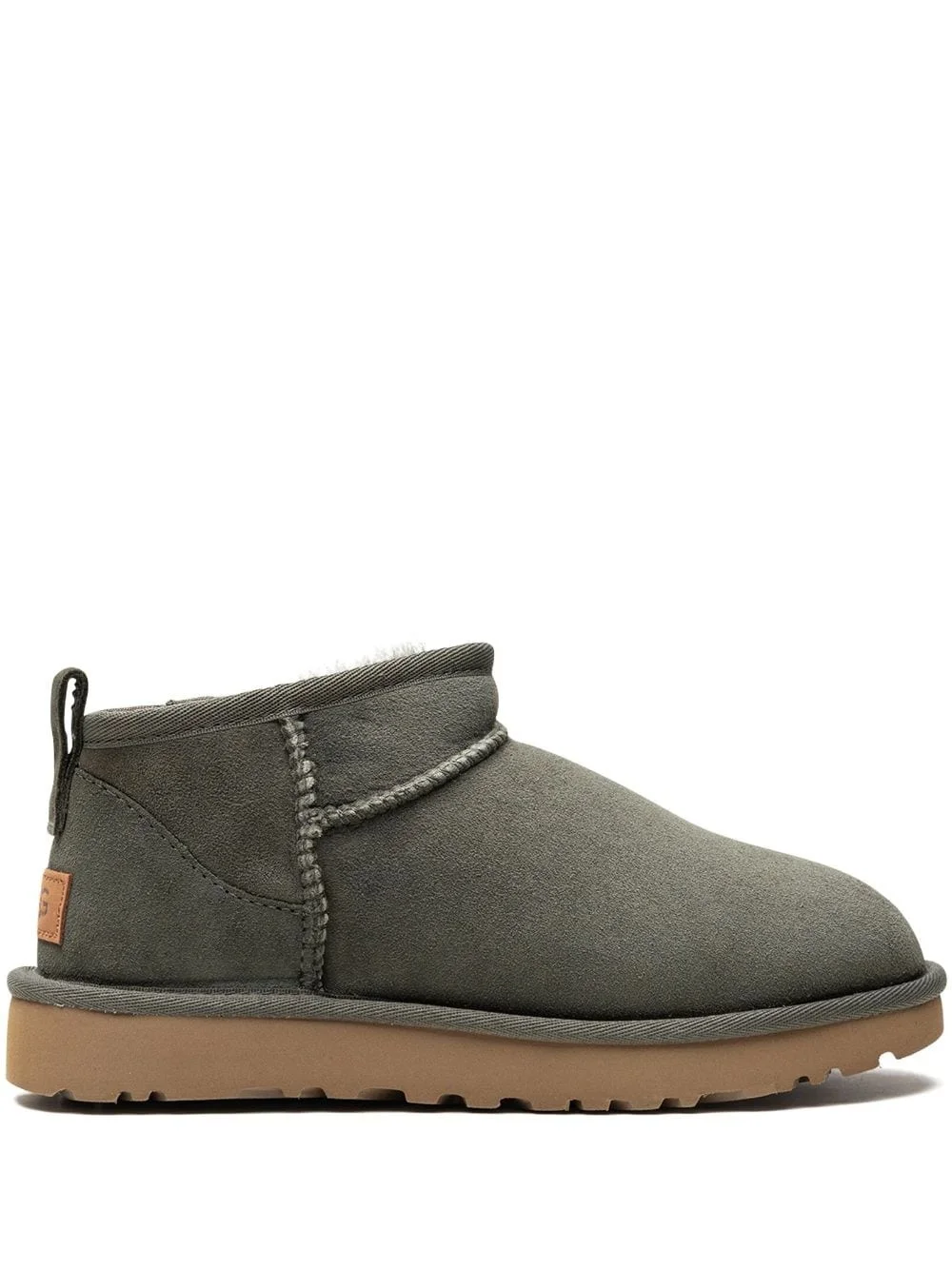Classic Ultra Mini "Forest Night" boots UGG's Classic Ultra Mini "Forest Night" boots are crafted from leather and lined with soft shearling for a cosy sensation. An exaggerated rubber sole underfoot makes the versatile pair suitable for both indoor and outdoor wear. Highlights - Forest green - Wool blend - Sheepskin - Logo patch to the rear - Round toe - Slip-on style - Pull-tab at the heel - Rubber sole - These styles are supplied by a premium and authenticated sneaker marketplace. stocking only the most sought-after footwear, they source and curate some of the most hard to find sneakers from around the world. Imported Composition Leather 100%