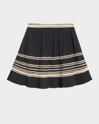 Adorned with contrast wavy ribbon detailing, the "Adaleigh" mini skirt by Ulla Johnson is crafted from crisp cotton poplin and finished with pleating. High rise Side pockets Aline silhouette Hem falls above the knee Side zip Cotton Dry clean Imported