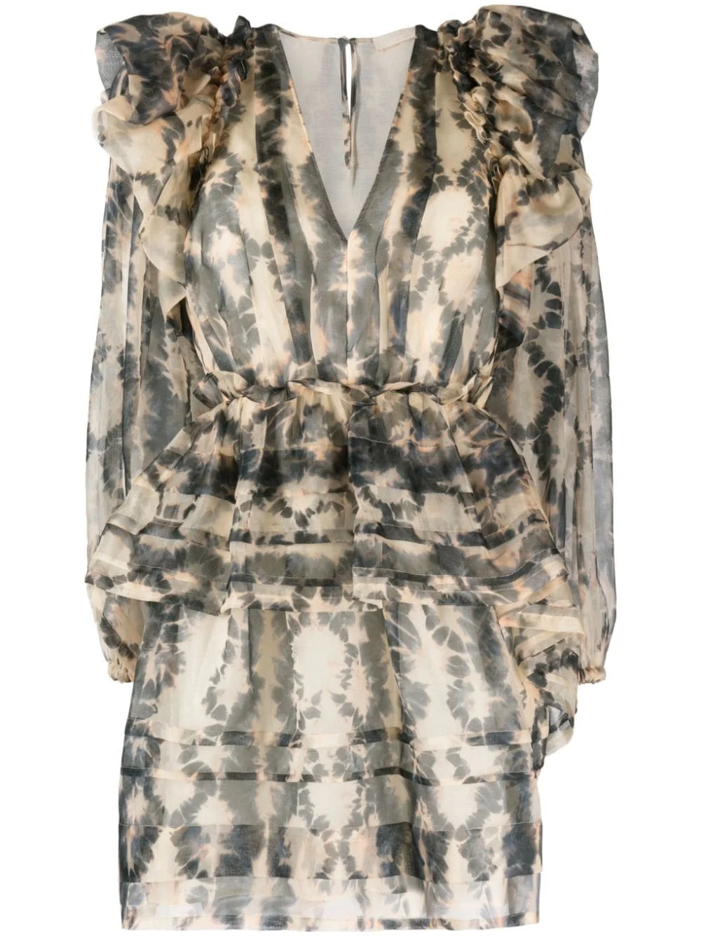 Adelaide abstract-print silk minidress From Ulla Johnson’s ethereal SS23 runway, this Adelaide dress is made from silk organza and enlivened with a custom stained glass print. It’s traced with frothy ruffles draw the eye to the plunging neckline. Highlights - Beige/navy - Silk - Organza - All-over graphic print - Ruffled detailing - V-neck - Concealed side zip fastening - Rear button fastening - Long sleeves - Elasticated cuffs - Straight hem - Thigh-length Imported Composition Lining: Cotton 72%, Silk 28% Outer: Silk 100% SIZE & FIT Model measurements Height 5 ft 10 in(1.78 m) Bust/Chest 29.92 in(76 cm) Hips 34.64 in(88 cm) Waist 23.62 in(60 cm) FittingInformation Designed for a close fit at the chest and waist with a loose fit at the hip Made from a midweight non-stretch fabric This piece fits true to size – take your usual size Washing instructions Dry Clean Only