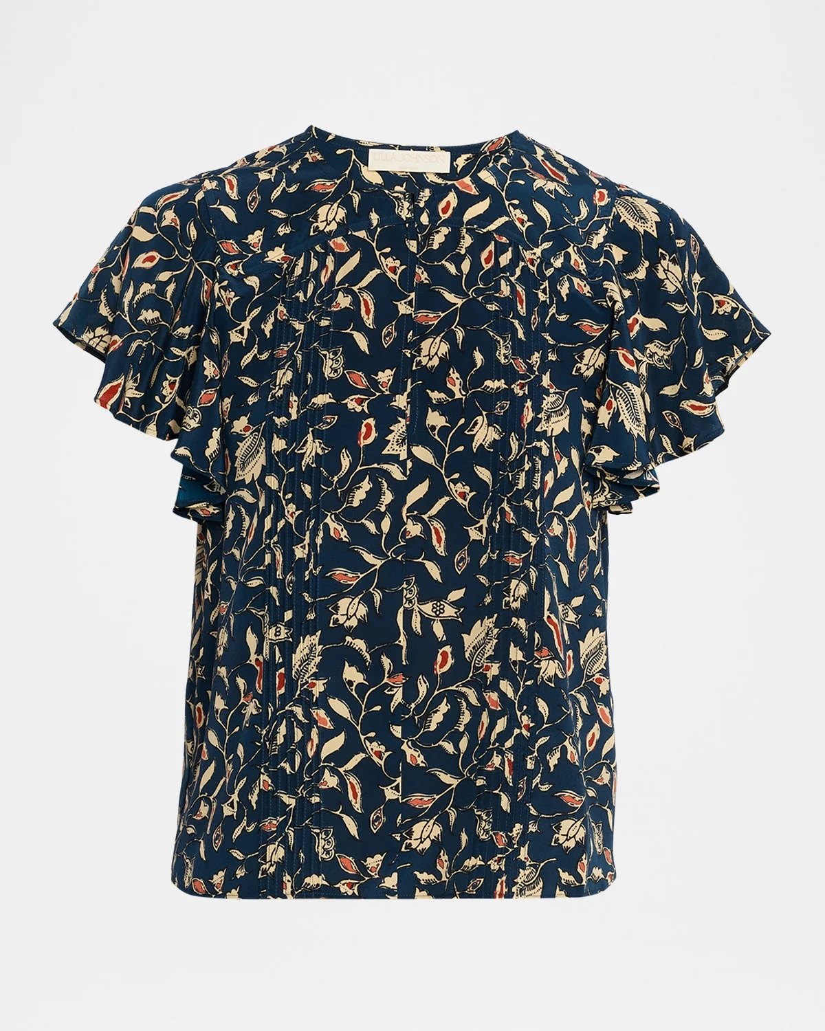 Framed by flutter sleeves that lend soft movement, the Ulla Johnson "Adoni" features a floral batik print atop silk crepe de chine Round neckline Short flutter sleeves Relaxed fit Slipover style Silk Dry clean Imported