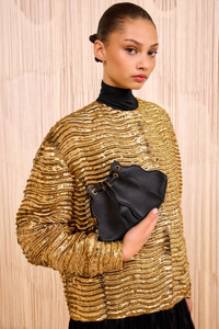 The Adria Crossbody is an iconic signature crafted from panels of leather sewn together and finished with painted edges, emphasizing the beauty of the waves. Refined in black for optimal versatility, this sculptural accessory features a drawstring opening and a removable shoulder strap for crossbody or wristlet wear. - Height: 6.1 in / Length: 4 in / Depth: 2.8 in - Strap drop: 21.7 in - Calfskin leather - Suede lining - Drawstring closure - Signature hammered antique brass hardware