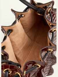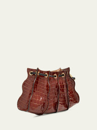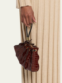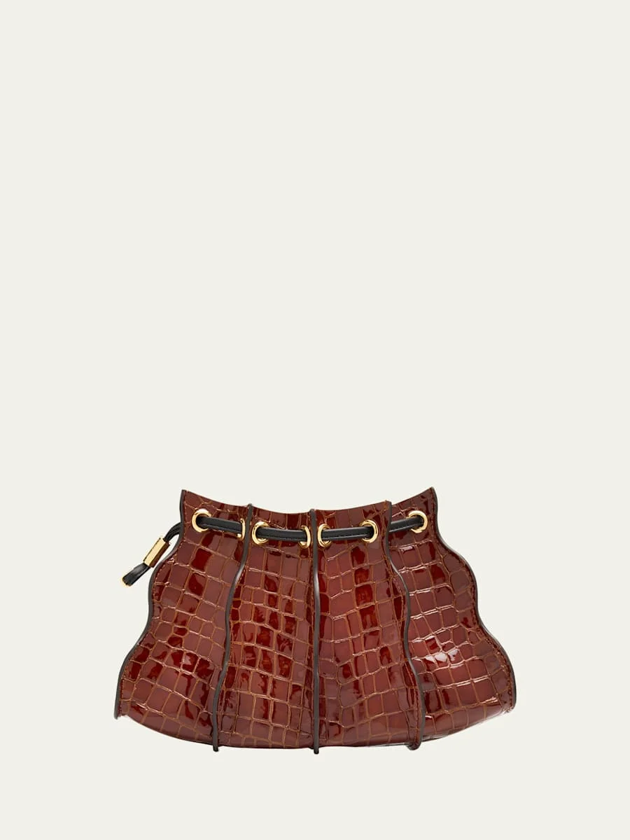 This "Adria" crossbody bag from Ulla Johnson is crafted in panels of crocembossed patent leather, sewn together for a wavy, dimensional silhouette and finished with handpainted edges Wristlet strap Detachable crossbody strap, 21.7" drop Can be worn as a wristlet or crossbody bag Drawstring closure Lining: Suede Approx. 6.5"H x 9.5"W x 3"D Made in Bulgaria