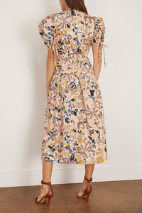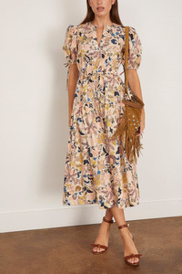 The Ulla Johnson Adriana Short Sleeve Midi Dress is crafted in a bold vintage batik motif. You'll love the feminine fit and flare silhouette of this midi dress with puffed sleeves. Wear yours with boots and a shoulder bag. FIT DESCRIPTION MODEL MEASUREMENTS - Fits true to size, take your normal size - Midi length - Fit and flare sihouette - Puffed sleeves - Elastic drawstring waistband - Split neckline - 100% Cotton - Allie is wearing a size 2 - Bust: 32” - Waist: 25” - Hips: 35” - Height: 5’9”