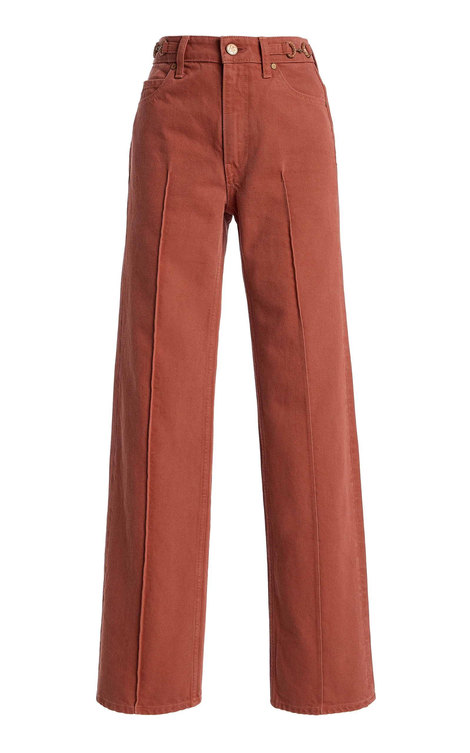 PRODUCT DETAILS - Straight leg, pockets - Zip fastening through front - Composition: 100% Cotton - Color: red - Dry Clean Only - Resort '26