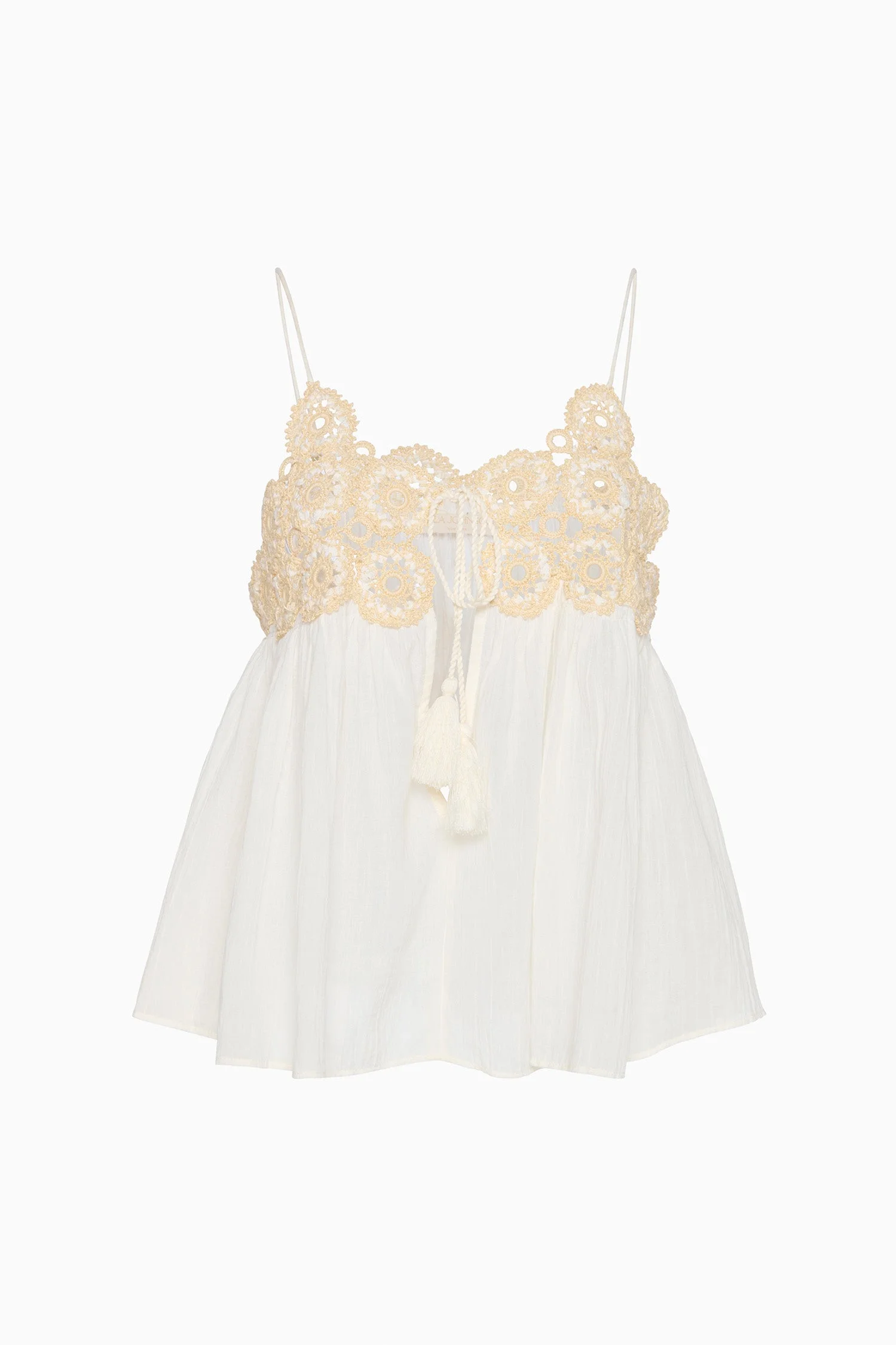 The Alessia Coverup Top is made from ethereal white gauze that has an artisanal touch with intricately hand-crocheted florals. Coordinate for escapes with the matching Liya Short. - Cotton gauze - Model Height: 5'11" - Designed for a loose fit - V-neckline - Tasseled ties at front - Composition: 100% cotton - Hand wash cold - Style# SP261726