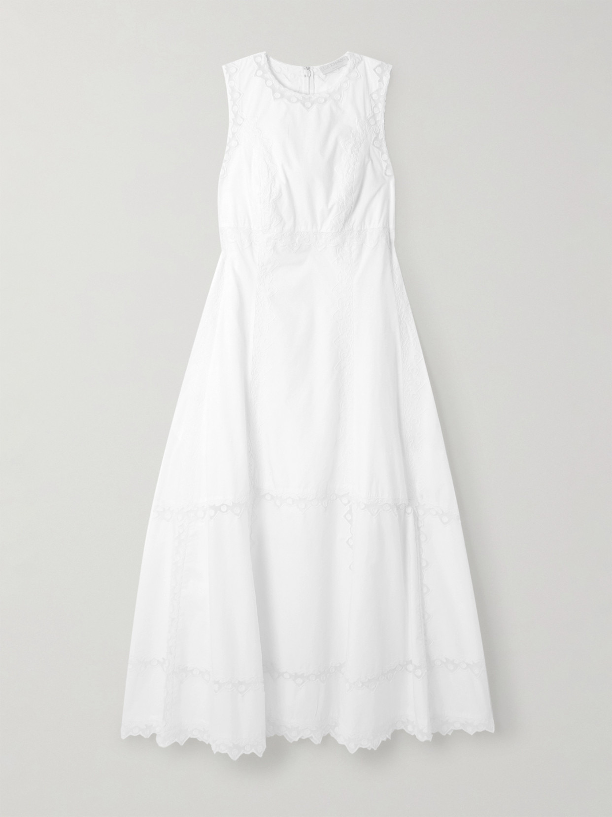 Anela Embroidered Tulle-trimmed Cotton-poplin Midi Dress