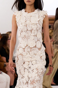 Look 16 on the SS23 Runway, the Anita Dress is a dimensional, hand-crocheted dress adorned with intricate wildflowers that are meticulously placed on the form. Designed with a sense of occasion, this white floor-length dress has a fitted bodice that releases into a skirt alive in poetic volume. - Floral hand-crochet - Model Height: 5'10" - Designed for a slim fit, volume in hem - Maxi length - Round neckline - Sleeveless - Full length slip lining - Pullover style - Composition: 100% cotton - Dry clean only - Style# SP260717
