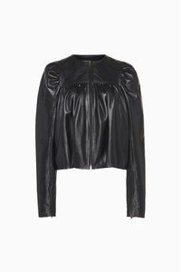 The Anouk Jacket is expertly tailored from leather with subtle paneling and gathers for elegant structure. Framed by signature puff sleeves, this wardrobe heroine has a clean, collarless neckline and arrives in black for endless versatility. - Nappa leather - Model Height: 5'10" - Designed for a voluminous, slightly cropped fit - Puffed long sleeves with zipped cuffs - Lined - Zipper through front - Composition: 100% lambskin leather - Dry clean by leather specialist