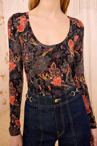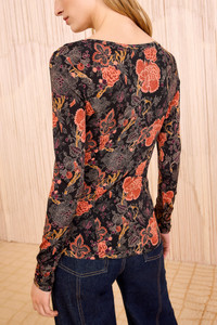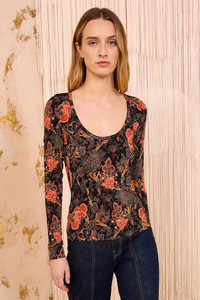 The Aris Top arrives in silky-soft, lightweight jersey awash in botanicals inspired by a French print from the 19th century. This multicolored style easily tucks into our handmade denim, while the U-neckline is perfect for showcasing a favorite pendant. - Tricot jersey - Model Height: 5'11" - Designed for a close fit - U-neckline - Long sleeves - Pullover style - Composition: 91% rayon, 9% elastane - Gentle machine wash