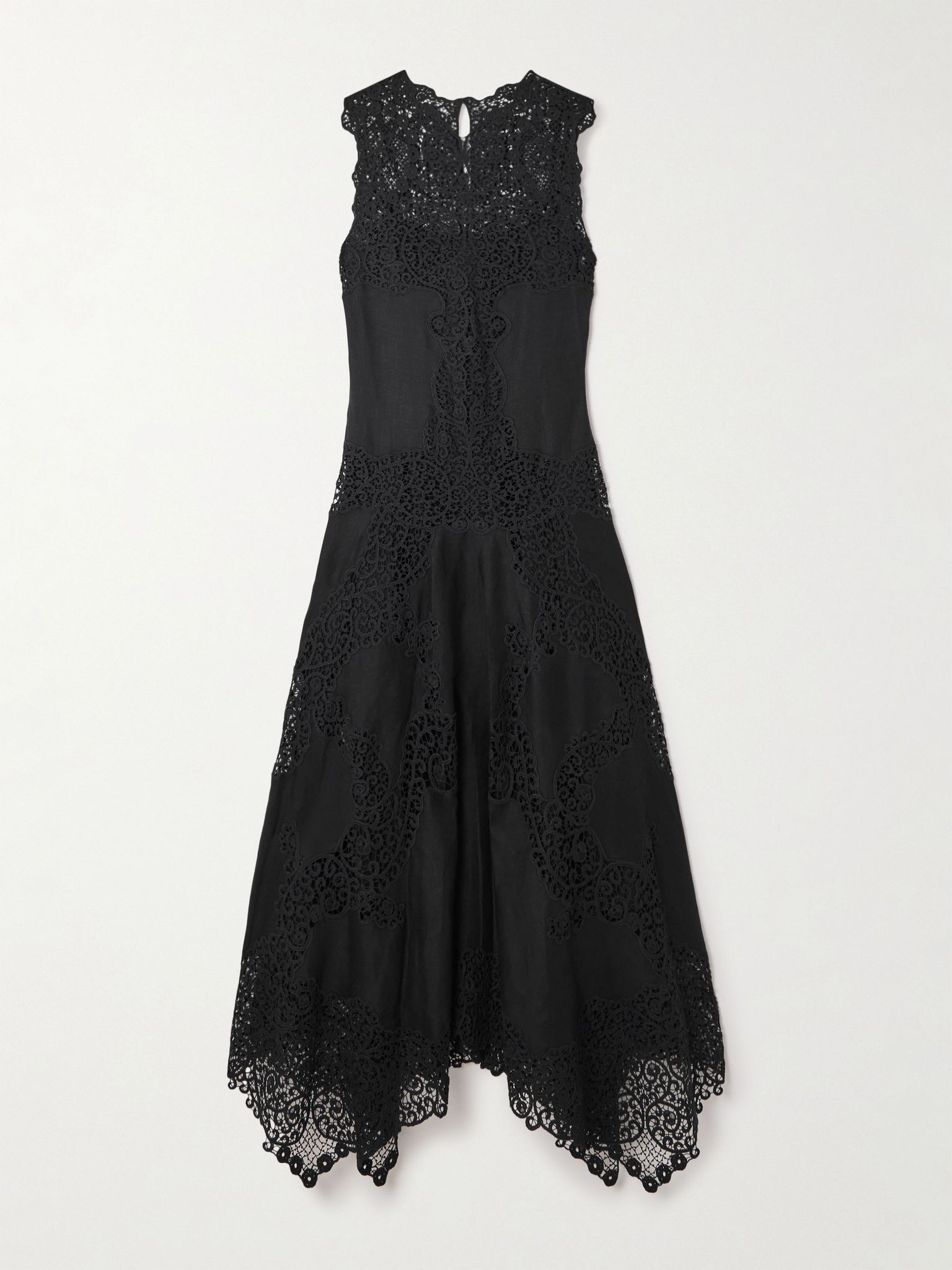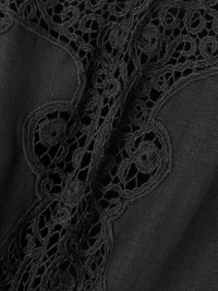 Ulla Johnson's 'Arlette' dress is traced with guipure lace that's inspired by Victorian textiles - it's strategically placed to frame your figure, while revealing glimpses of skin along the decolletage and asymmetric hem. It's made from lightweight linen and fully lined for coverage. Size & Fit - Fits true to size, however those who are between sizes should take the smaller size - Designed for a slim fit - Lightweight, non-stretchy fabric - Model is 175cm/ 5'9" and is wearing a US 2 Model measurements: - Bust: 85cm/ 33.5” - Waist: 63cm/ 25” - Hip: 90cm/ 35.5” Details & Care - Black linen and guipure lace - Button-fastening keyhole at back - 100% linen; trim: 100% polyester; lining: 100% cotton - Fully lined - Dry clean