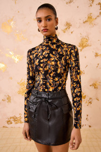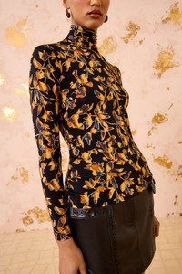 The Aurelia Turtleneck in lightweight tricot jersey is a forever favorite silhouette, reimagined with vibrant florals in graphic textures and shadows. This multicolored long-sleeve top has a close fit that makes it perfect for layering or wearing on its own, while the high neck adds an elegant touch. - Tricot jersey - Model Height: 5'10" - Designed for a close fit - Turtleneck - Long sleeves - Pullover style - Composition: 91% rayon, 9% elastane - Gentle machine wash