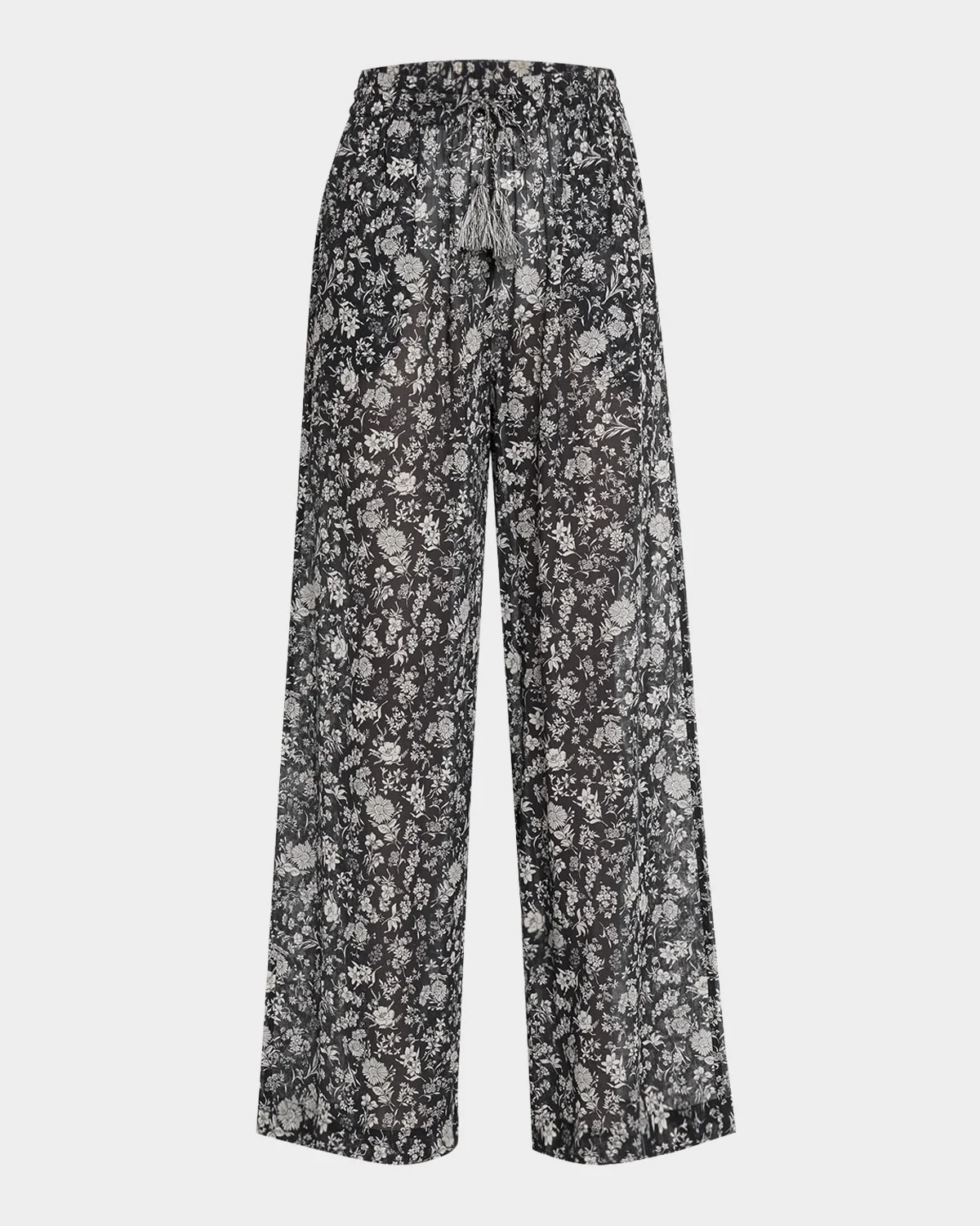 Crafted from semisheer lightweight cotton, the "Azra" coverup pants by Ulla Johnson are printed with a lovely floral pattern and finished with tassel tie ends Highrise drawstring waistband Side seam pockets Full length Wide legs Pullon style Cotton Unlined Do not iron, handwash Imported