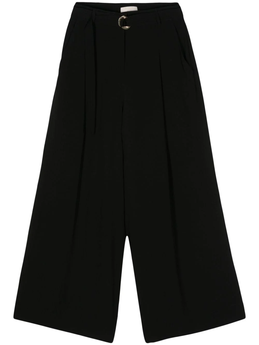 belted crepe palazzo pants Highlights - Black - Crepe texture - Gold-tone hardware - Pleat detailing - Wide leg - High-waisted - Detachable waist belt - Belt loops - Hook and zip fly fastening - Two diagonal pockets to the sides - Two rear welt pockets - Straight hem Imported Composition Lining: Polyester 100% Outer: Viscose 100%