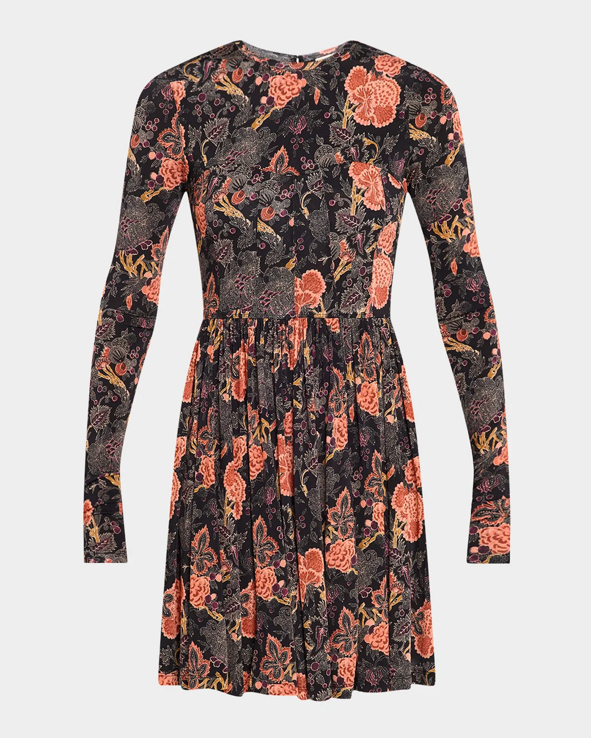 - Knit from lightweight stretch jersey for a comfortable fit, the "Bendetta" botanical-printed dress by Ulla Johnson consists of flattering corset seaming through the bodice and soft gathering for added volume in the skirt - Crew neckline - Long sleeves - Hem falls above the knee - A-line skirt - Concealed back zipper - Promodal® rayon/elastane - Machine wash warm - Imported