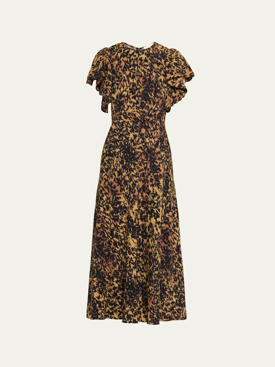Ulla Johnson "Blithe" midi dress featuring scalloped flutter sleeves Crew neckline A-line silhouette Hem falls below the knee Center back zip Viscose Dry clean Imported Online Inquiries: BGS21_T6XPK| Store Inquiries: #5021329