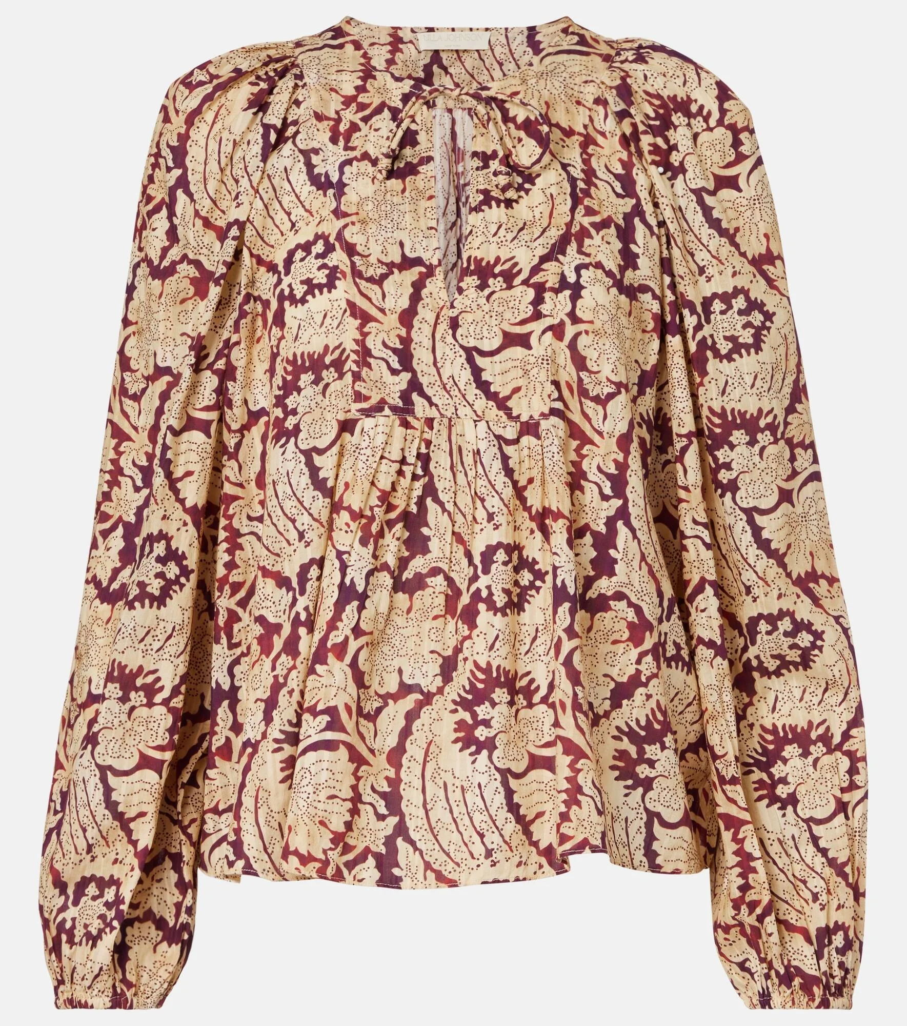 Ulla Johnson grew up traveling extensively with her archaeologist parents, and she regularly draws on these rich memories for inspiration. Made from breezy cotton-blend material, the Brea blouse is complete with a self-tie neckline and cinched cuffs. Product Details - Material: 66% cotton, 34% viscose - Care instructions: hand wash - Made in India - Designer color name: Amaranthus - Item color: burgundy, beige - Closure: drawstring top - Cuff: elasticated - Item number: P01078688 Size & Fit - True to size - Designed for a loose fit - Non-stretchy fabric - Falls to the hip - The model seen in the picture is 178cm-5'10" and wearing a size US 4