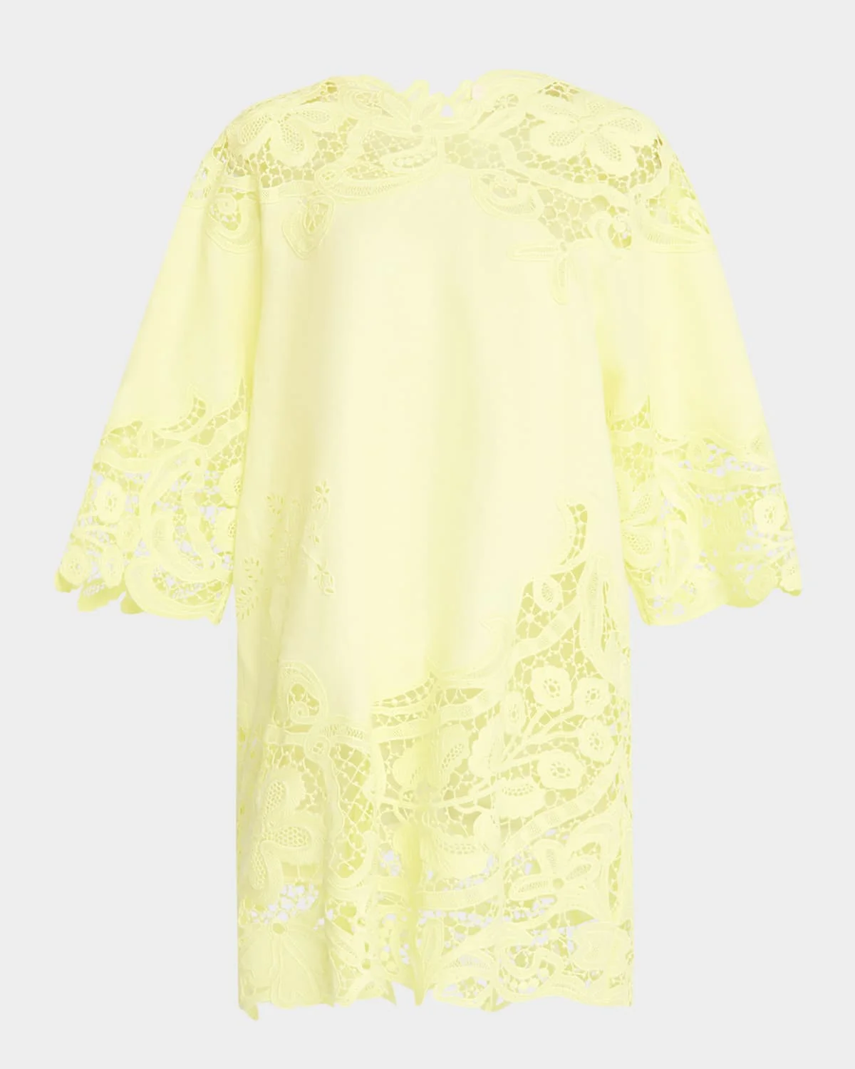 - Ulla Johnson "Brinna" top with delicately embroidered lace insets - Crew neckline - Relaxed 3/4 sleeves - Tunic length - Relaxed fit - Back button/loop closure - Linen - Slip lining included - Lining: Polyester - Dry clean - Imported