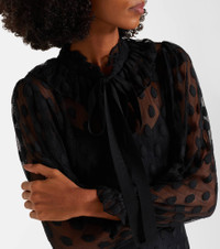 Take on your next event in style with the Soraya maxi dress from Ulla Johnson. The design is crafted from polka-dot mesh and features an elegant tie-neck detail. Product Details - Material: 60% polyamide, 40% cotton - Care instructions: dry clean - Made in India - Designer color name: Noir - Item color: black - Lining: 100% silk - Self-tie collar - Cuff: elasticated - Closure: buttoned placket - Detachable lining - Item number: P01100388 Size & Fit - True to size - Semi-sheer - Cinched waist - Slightly stretchy fabric - The model seen in the picture is 178cm-5'10" and wearing a size US 4