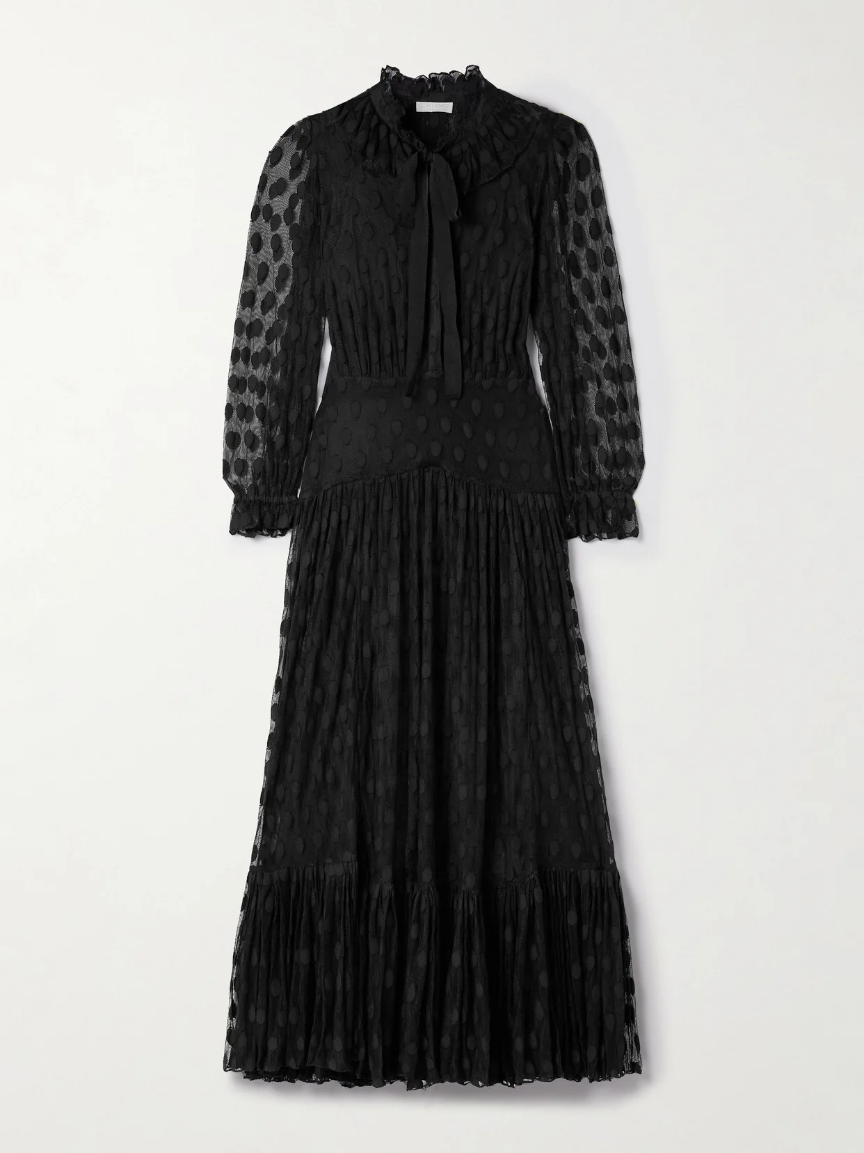 Carla Tie-neck Ruffled Fil Coupé Mesh Maxi Dress
