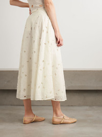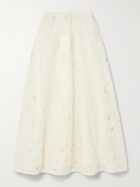 Ulla Johnson's 'Caro' skirt is embroidered with delicate, cutout florals that feel so romantic. It's made from lightweight cotton-voile and flares out to an A-line hem. Style yours with the matching top and sandals. Size & Fit - Fits true to size, take your normal size - Midi-length, designed to be worn at the waist - Lightweight, non-stretchy fabric - Model is 177cm/ 5'10" and is wearing a US 2 Model measurements: - Bust: 85cm/ 33” - Waist: 66cm/ 26” - Hip: 92cm/ 36” Details & Care - Off-white cotton-voile - Concealed hook and zip fastening at side - 100% cotton; trim: 100% polyester - Fully lined - Dry clean - Designer color: Chalk