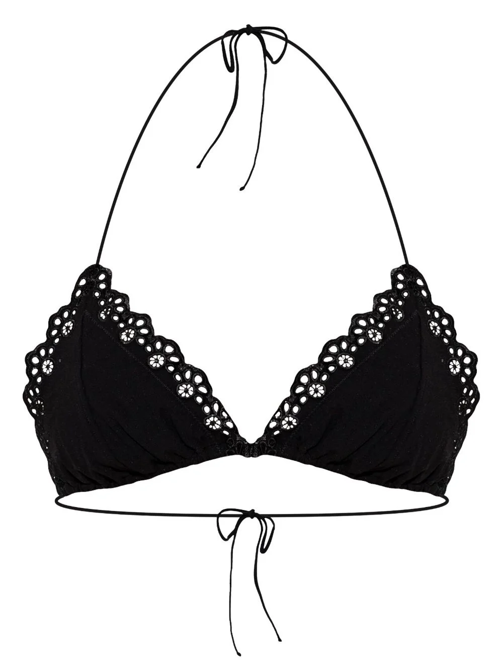 lace-trim bikini top Highlights - Black - Self-tie fastening - Triangle cup - Be mindful to try on swimwear over your own garments. Imported Composition Polyamide 74%, Elastane 26%