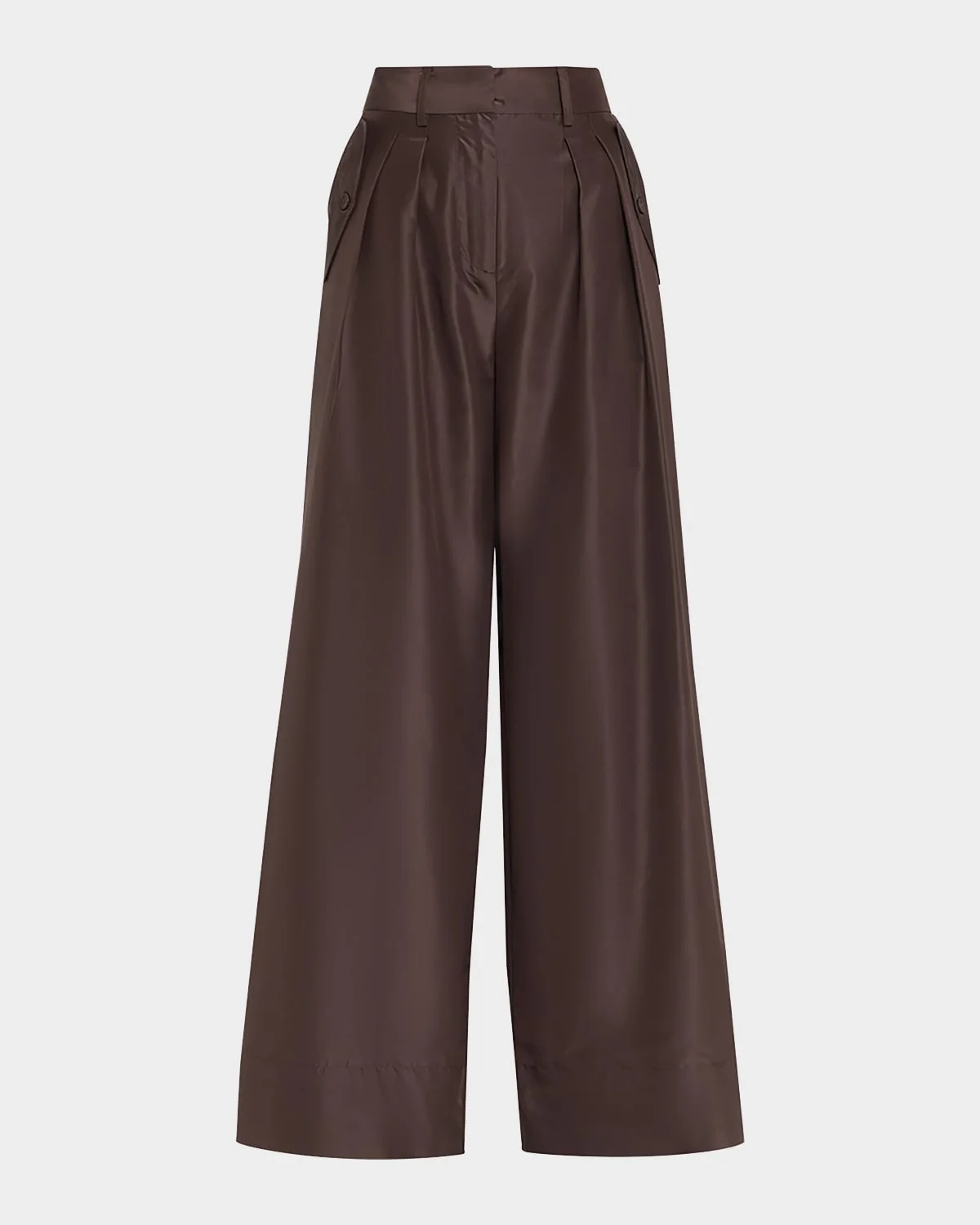 Ulla Johnson "Charlie" silkblend pants High rise Pleated front Fourpocket style Tailored, wide legs Full length Hook/zip fly; belt loops Polyester/silk Dry clean Imported