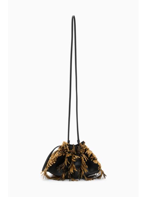 The Charlotte Shoulder Bag is a masterpiece of artisanal craft inspired by traditional basket weaving. Using time-honored techniques, it is hand-woven in Italy from a sumptuous blend of black leather and raffia textile with animalesque motifs and lush fringe. This shoulder bag has an internal suede-lined base to secure your belongings and tubular straps for comfort. The hammered brass toggle at the top secures the opening. Composition: Smooth Calfskin Leather and Raffia Textile Size & Fit Height: 31.5 CM / 12.4 IN Length: 35 CM / 23.7 IN Depth: 17 CM / 6.6 IN Drop: 32.5 CM / 12.7 IN