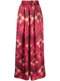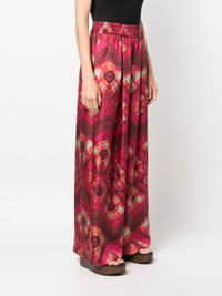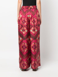 Clemence wide-leg trousers from ULLA JOHNSON featuring pink, silk, all-over graphic print, pleat detailing, pull-on style, elasticated waistband, wide leg, two side slit pockets and straight hem. Size & Fit Model Measurements: Height: 1.77 m Bust/Chest: 84.0 cm Hips: 88.0 cm Waist: 65.0 cm Model wears size 4 Fabric and Care Designer Style ID: PF230414 Designer Colour: WILD ROSE Composition: Silk 100%