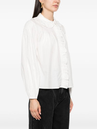 Dolores cotton blouse Highlights - White - Cotton - Poplin texture - French knot detailing - Pintuck detailing - Ruffled detailing - Round neck - Concealed front button fastening - Long bishop sleeves - Elasticated cuffs - Straight hem Imported Composition Cotton 100% SIZE & FIT Model measurements Height 5 ft 11 in(1.8 m) Bust/Chest 33.07 in(84 cm) Hips 37.4 in(95 cm) Waist 25.19 in(64 cm) FittingInformation Designed to be unstructured, offering a loose fit throughout Made from a midweight non-stretch fabric This piece fits true to size – take your usual size
