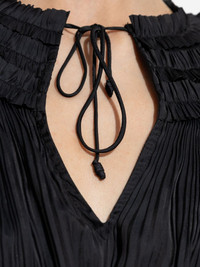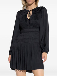 Lu mini dress Highlights - Black - Pleated design - Front tie-fastening - Long sleeves - Flared skirt Imported Composition Polyester 100% Washing instructions Read Manufacturer Guidelines