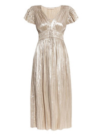 Patrice dress Highlights - Gold-tone - V-neck - Short sleeves - Pleat detailing Imported Composition Recycled Polyester 55%, Polyester 45%