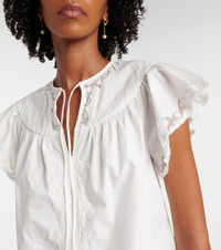 Crafted from soft cotton, the Effie top from Ulla Johnson features a breezy silhouette with tonal geometric embroidery and delicate tulle appliques. The loose fit silhouette is complete with fluttering short sleeves and a self-tie neckline. Product Details - Material: 100% cotton - Care instructions: dry clean - Made in India - Designer color name: Pristine - Item color: white - Trim: 100% nylon - Embroidery: 100% polyester - Closure: self-ties - Item number: P01078707 Size & Fit - True to size - Designed for a loose fit - Non-stretchy fabric - Falls to the hip - The model seen in the picture is 178cm-5'10" and wearing a size US 4