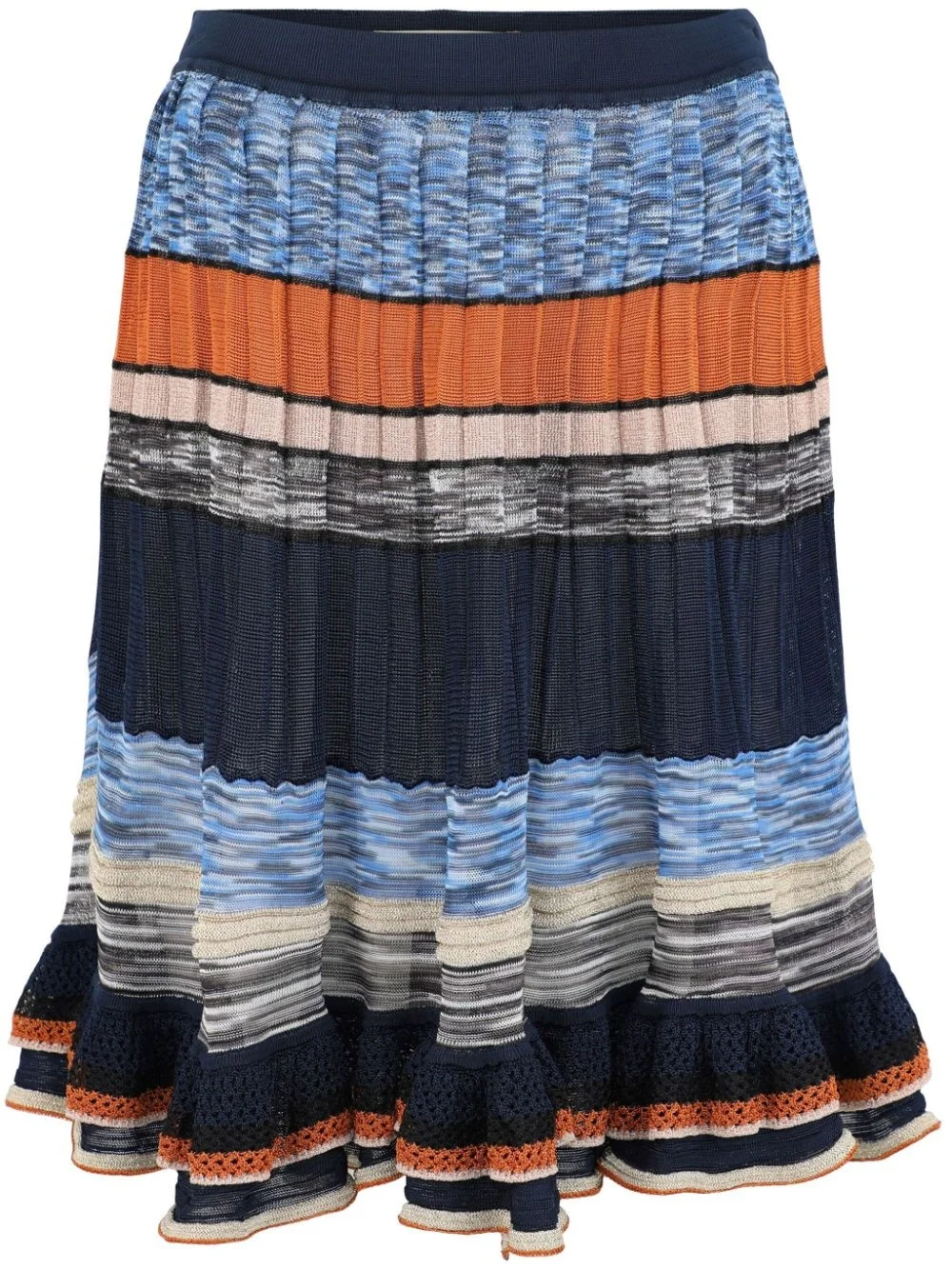 Eios midi skirt Highlights - Navy blue - Elasticated waistband - Horizontal stripe pattern - Fully pleated - Ruffle hem Imported Composition Viscose 80%, Polyester 11%, Nylon 6%, Metallized Polyester 3%