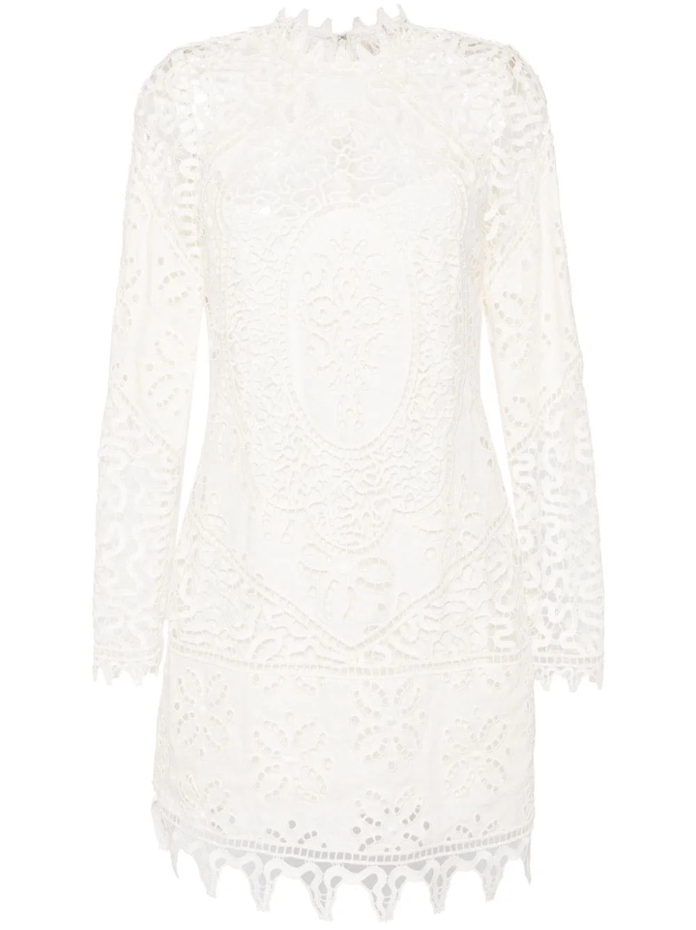 Eleni mini dress Highlights - White - Cotton/linen - Layered design - Perforated design - Semi-sheer construction - Crew neck - Long sleeves - Scallop hem - Above-knee length - Concealed rear zip fastening Imported Composition Lining: Cotton 100% Outer: Linen/Flax 100% SIZE & FIT Model measurements Height 5 ft 10 in(1.77 m) Bust/Chest 30.7 in(78 cm) Hips 35.03 in(89 cm) Waist 23.62 in(60 cm) FittingInformation Designed for a slim fit that sits just away from the body offering a close yet comfortable fit Made from a midweight non-stretch fabric This piece fits true to size – take your usual size