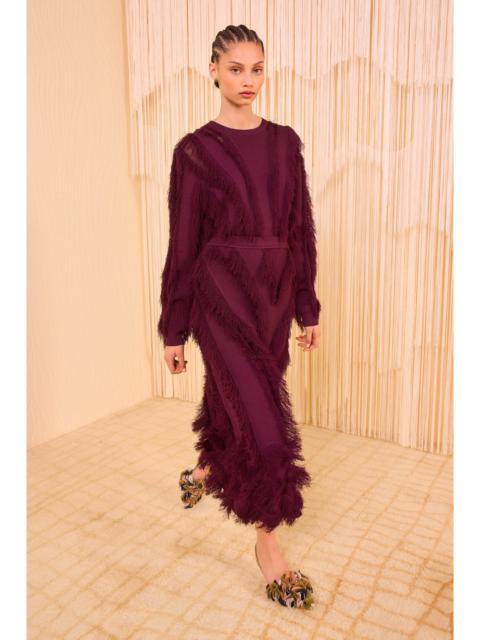 Made from our heritage plisse satin, the Eloise Skirt makes a statement with swathes of ruffles gathered and micro pleated into cascading tiers. This occasion-ready midi skirt has an elegant column silhouette and is a classic black for elevated versatility. It fastens with a discreet side zipper. Composition: 100% Polyester Pair it with our Marion Knit Tank to complete the look. Size & Fit - Model Height: 5'10"