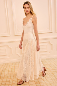 The Faun Skirt blends a timeless cotton style with eyelet embroidery that adds depth and dimension. Sitting high at the waist, this summery skirt has gathered side panels that add gestural volume and is finished with scalloped edge embroidery. - Eyelet cotton - Model Height: 5'11" - Midi length, fixed high-rise waist - Full cotton lining - Concealed back zipper - Composition: 100% cotton - Machine wash cold - Style# SP260316