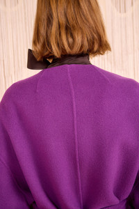 Look 43 of the AW25 runway showcases the Fernanda Coat in our signature double-faced wool and cashmere blend, arriving in a mood-boosting purple hue. This luxurious, single-breasted style features an elongated silhouette and a fabric belt, offering an effortless mix of versatility and comfort. - Double-faced wool - Model Height: 5'11" - Designed for an oversized fit, removable waist tie - Dropped shoulders - Patch pockets - Buttons through front - Composition: 75% wool, 10% acrylic, 10% polyamide, 5% cashmere - Dry clean only
